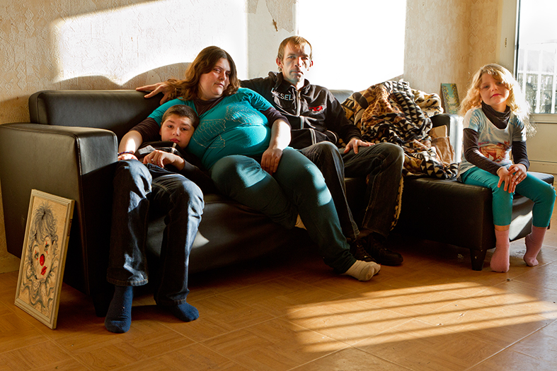 la ressemblance étant affaire de désir (de soi, des autres) autant que d’identité. Pourquoi cette fillette en princesse, ce garçon qui surjoue les motards et celui-là qui se cache dans la fratrie ? Quid de la présence des animaux, d’accessoires, de sourires sincères ou pas ? Autant de traits de notre condition commune dont la photographie fige des modalités*possibles, ici un ensemble de familles liées à une institution de Barentin coopérant à un résidence artistique en 2014..